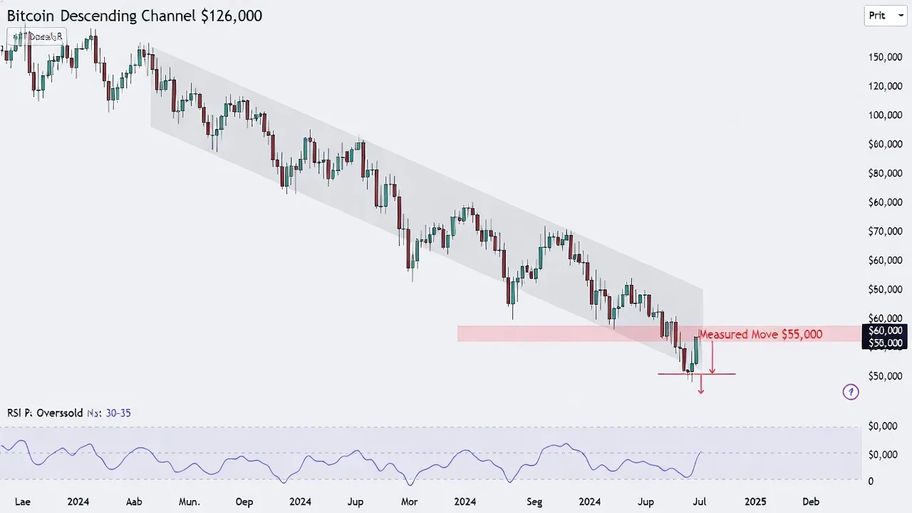 Measured move from head-and-shoulders targets $55K-$58K. The worst case (if the macro worsens) could test $50K, but that’s not the base case.